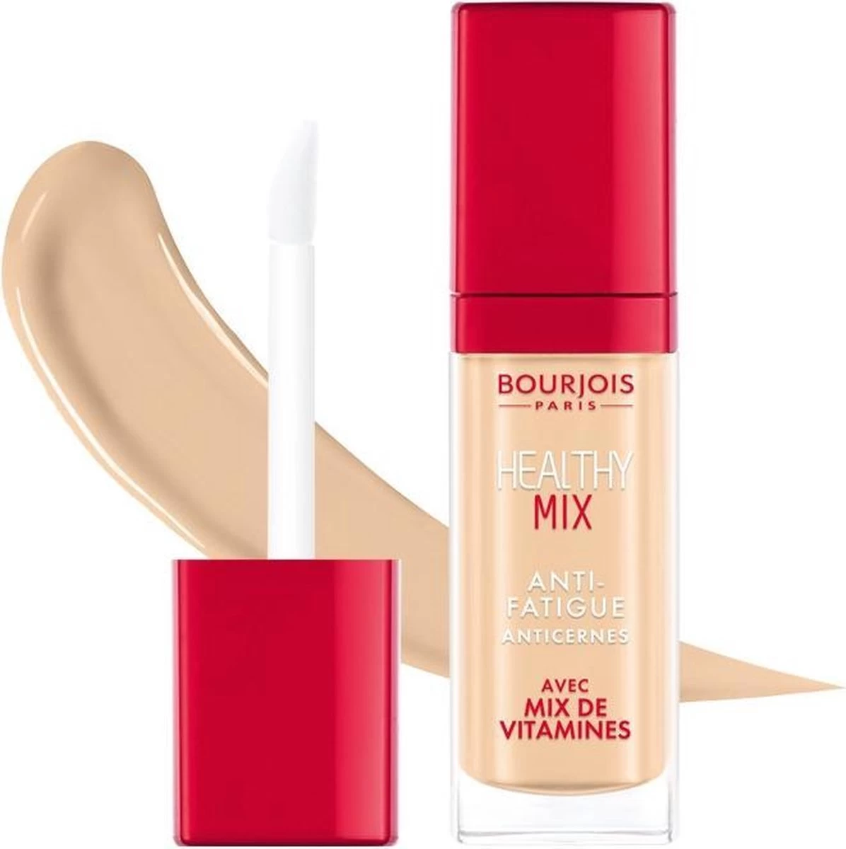 Ben je het zat om er vermoeid uit te zien? De Bourjois Healthy Mix Anti-vermoiedheid Make up Concealer corrigeert onmiddellijk alle tekenen van vermoeidheid voor een ontspannen uitstraling. De makkelijk aan te brengen formule mengt zich gemakkelijk in de huid en bedekt donkere kringen onder de ogen zonder strepen of vlekken. Met de mix van vitamine C, E en B5 is de Healthy Mix concealer de perfecte mix wanneer je de stralende en gezonde huid wilt. Gebruik de zachte, fluwelen applicator voor nauwkeurige applicatie. Om donkere kringen rond de ogen tegen te gaan, is Healthy Mix Anti-Fatigue Concealer de beste aanvulling op je ochtendroutine.