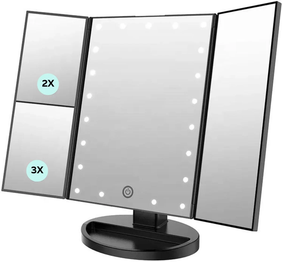 Door middel van alle features van deze spiegel creëer je de mooiste professionele make-up looks. De LED-verlichting, de vergrootspiegels en de draaifunctie zorgen ervoor dat je nauwkeurig bent en alles goed kunt zien. Verder is de spiegel ook inklapbaar en kun je hem dus makkelijk meenemen.