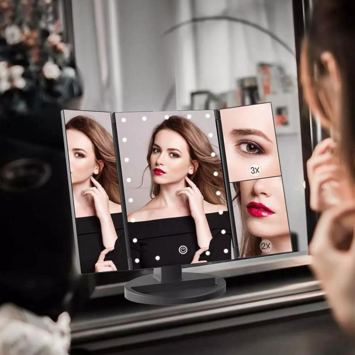 ECCEB Make-up Spiegel – LED Verlichting – Vergrootspiegel – Inklapbaar – 22 LED lampjes – Draaibaar – Batterij & USB oplaadbaar – Smart touch