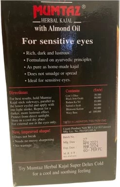 Kajal is het Hindi-woord voor kohl. In India wordt het door vrouwen als een soort van eyeliner rond de ogen aangebracht. Op het platteland van zuidelijk India, vooral in de staat Kerala wordt de kajal door vrouwen binnenshuis gemaakt. De GoodUse Export Mumtaz Herbal Kajal Stick is op natuurlijke wijze gemaakt op basis van Ayurvedische principes. De kajal oogpotlood bevat ook amandelolie en is vanwege de natuurlijke bereidingswijze goed bestemd voor de zeer sensibele ogen.