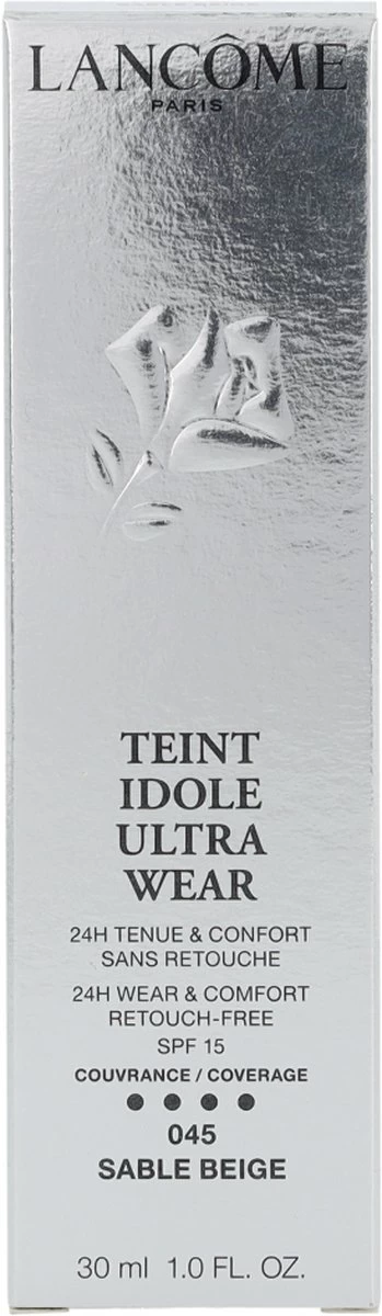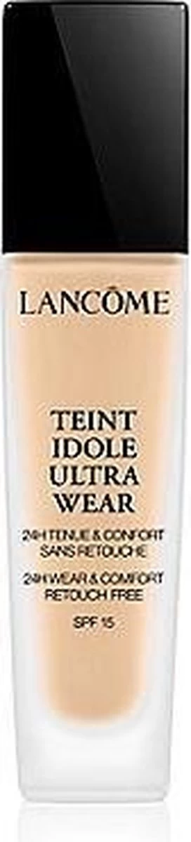 Lancôme Teint Idole Ultra Wear Foundation is een vloeibare, fluweelzachte volledig dekkende foundation. De vloeibare foundation zorgt er qua structuur voor dat je huid zich 24 uur comfortabel voelt en de gehele dag goed blijft zitten. De frisse en smeltende foundation zorgt voor een egale huid, die fluweelzacht aanvoelt. De Lancôme Teint Idole Ultra Wear Foundation geeft je huid een matte en onberispelijke finish en is verkrijgbaar in veel kleuren.