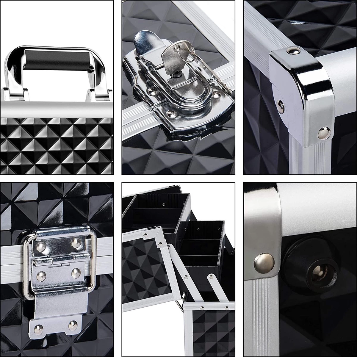 - Solide en duurzaam – de make-upkoffer is gemaakt van kunststof en aluminium en robuust genoeg voor jarenlang veelvuldig gebruik.
