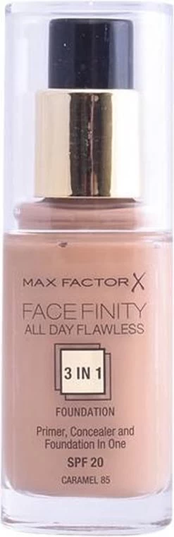 De Max Factor Facefinity All Day Flawless 3-in-1 Foundation is een vloeibare foundation, primer en concealer in één voor een langhoudende en matte finish. De foundation bevat een water-in-siliconen emulsie die makkelijk opbouwbaar is en zorgt voor een medium tot hoge dekking. Dankzij de primer blijft de make up foundation de hele dag zitten en dankzij de concealer worden oneffenheden en imperfecties perfect verhult. Dankzij de lichtgewicht formule voelt de 3-in-1 foundation licht aan. De foundation blijft ook zitten als je een mondkapje draagt!