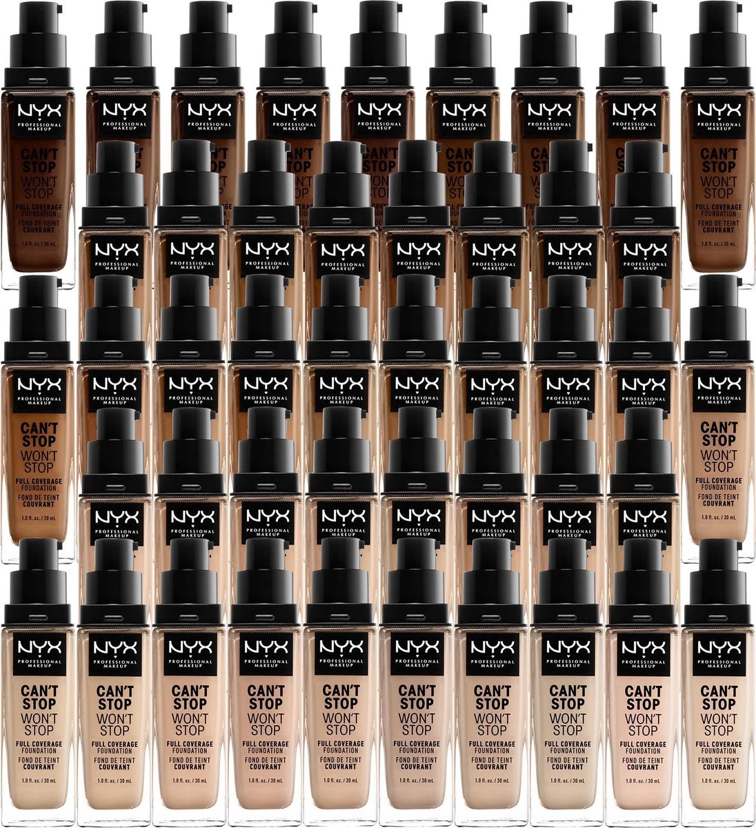 Lichtgewicht, waterproof en super gepigmenteerd. NYX Professional Makeup’s Can’t Stop Won’t Stop Full Coverage Foundation Vanilla CSWSF06 werkt net zo hard als jij. Deze comfortabele, vloeibare foundation is er in 45 verschillende kleuren en is transferproof. Elke kleur is smooth aan te brengen en laat een matte finish achter die de hele dag blijft zitten. De foundation werkt hard om jouw huid te matteren en om een glimmend gezicht tegen te gaan. Ook verstopt hij de poriën niet en is de foundation te gebruiken voor normale, vette, combinatie en gevoelige huidtypes.
