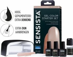 De Sensista Color Gel droogt alleen met de speciale Sensista LED-lamp (die ook in de Starter Set zit). Verder bevat de Starter Set ook nog de volgende producten: