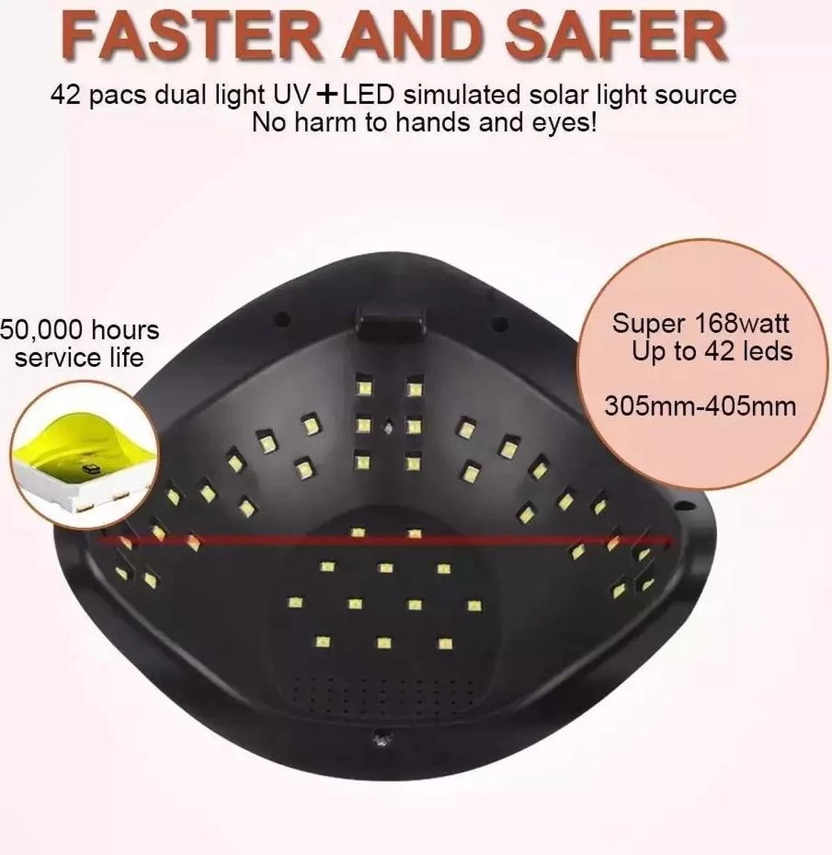 Dankzij de dubbele golflengte technologie 365nm en 405 nm is deze geschikt voor elke gel nagellak en zorgt ervoor dat de gel perfect uithard.